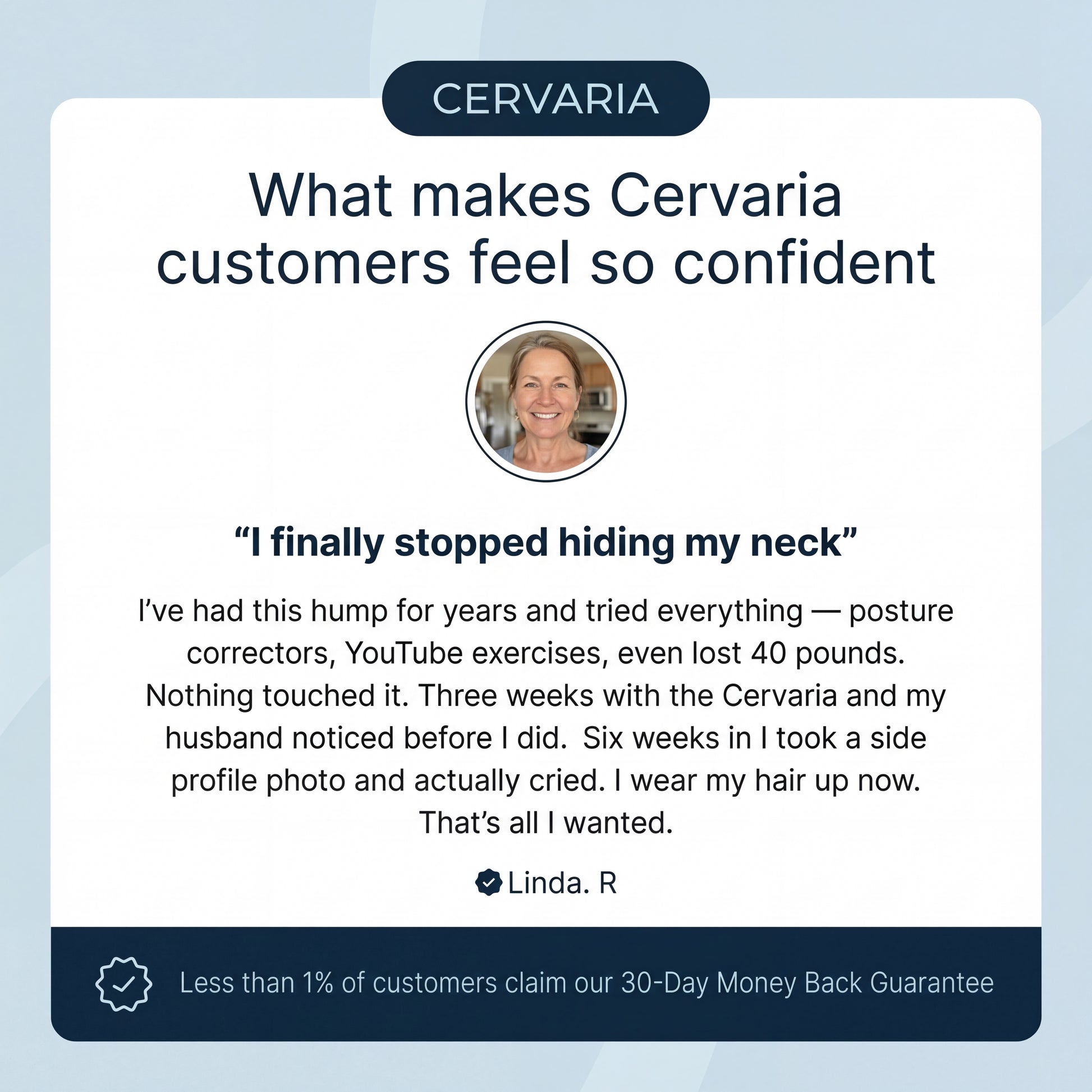 Say goodbye to posture correctors that dig in, exercises you can't keep up with, and braces you forget to wear. Just 10 minutes. Three targeted zones. Built exactly where a neck hump forms — and designed to reverse it.